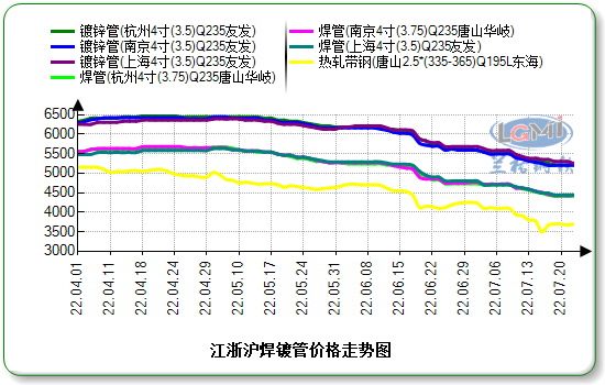 7月下旬江浙沪焊管、镀锌管价格继续寻底,跌幅百元左右。据兰格钢铁云商平台监测数据显示,江浙沪地区焊管4寸*3.75mm主流报价4200-4300元,镀锌管4寸*3.75mm主流报价4900-5100元;区域内南京、杭州、上海差价50-100元,镀锌管与天津市场价差收窄至150元左右。