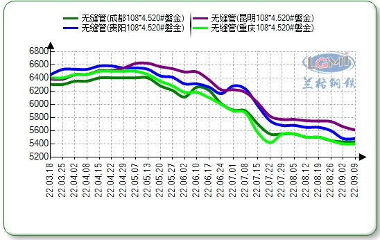 市场方面:成都受疫情影响,管厂无法正常发货,昆明、重庆区域市场库存可维持基本需求。中秋节到来之际,各贸易商的补库意愿不是很强,对后期市场仍表示谨慎悲观,因此预计近期西南地区无缝管市场价格弱稳。