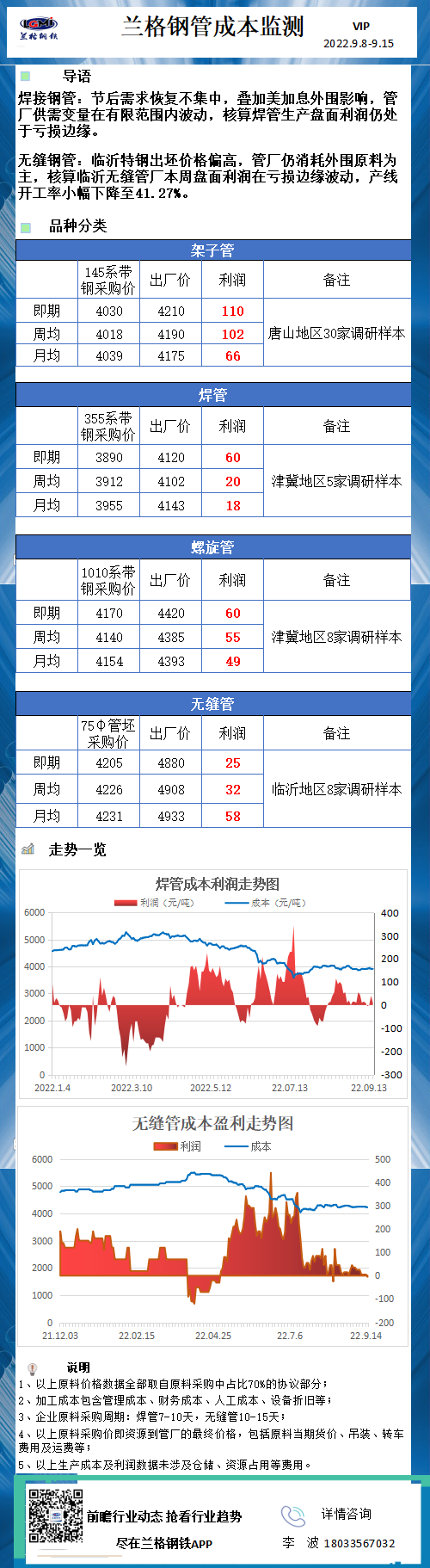 • 兰格调研:北方钢厂管坯周订单量追踪(9月9日)