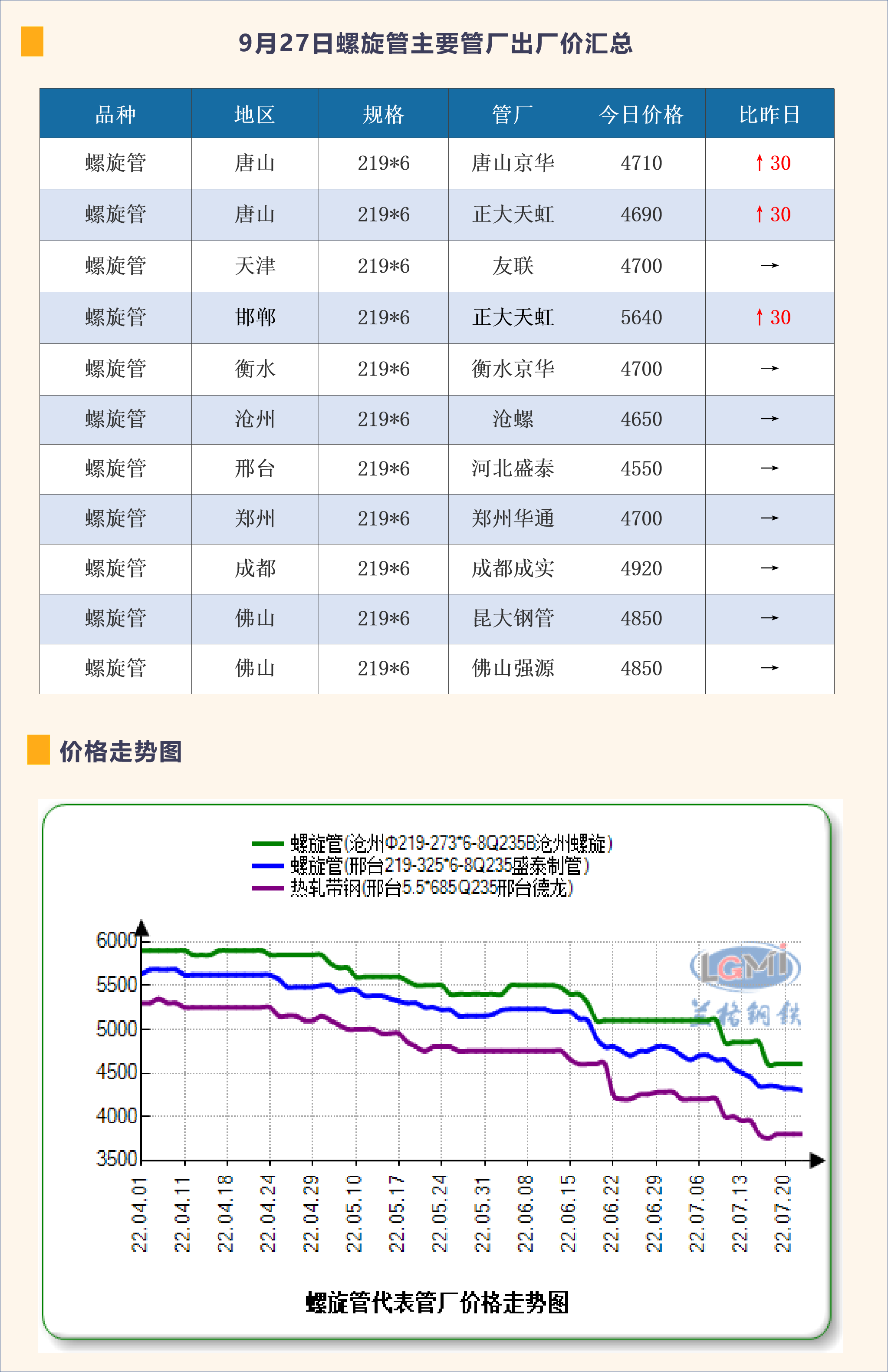 9月22日螺旋管主要管厂出厂价汇总