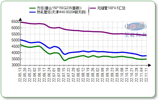 本周(11.07-11.11)国内无缝管市场报价呈现窄幅下行。上游钢厂管坯出厂报价主稳个调,其中钢投特钢周内累计上调30元,新天钢周内累计下调10元,而11月中旬,旬价钢厂价格整体持稳,现主流钢厂20#热轧管坯出厂报价3770-4350元。北方主流管厂周累计调幅30-50元,主跌个涨,兰格钢铁网数据平台监测显示,截至11日国内十大主导城市中等连轧无缝管市场均价5427元,较上周同期跌10元,跌幅较上周收窄。