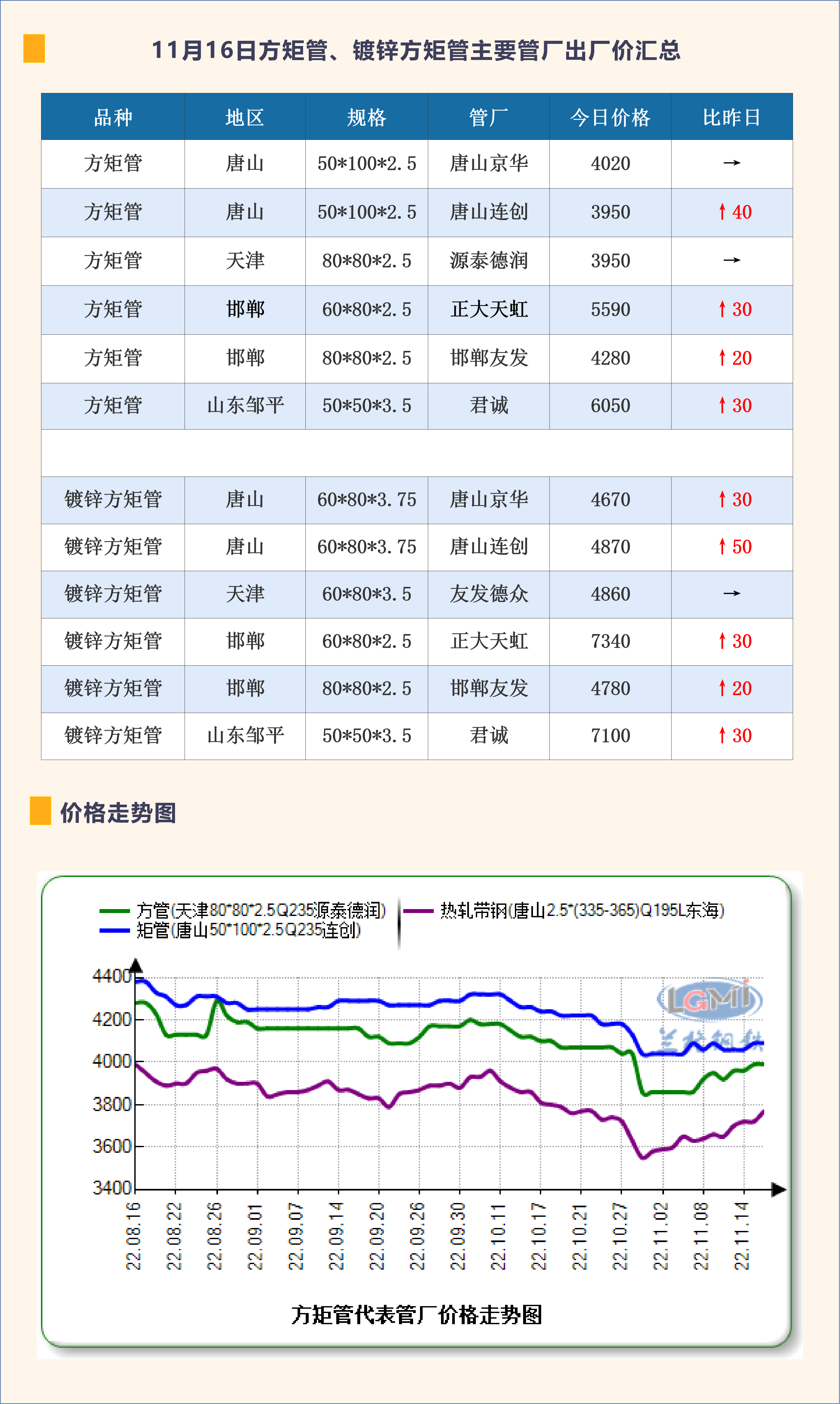 11月16日方矩管、镀锌方矩管主要管厂出厂价汇总