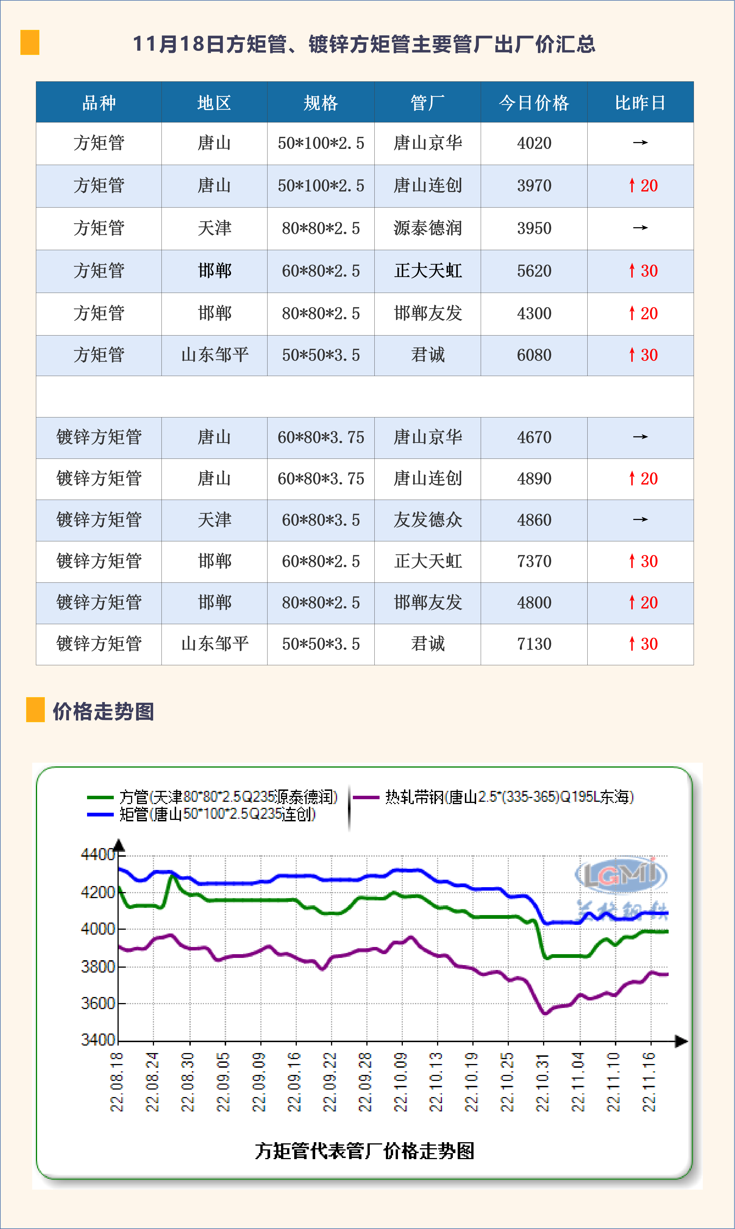 11月18日方矩管、镀锌方矩管主要管厂出厂价汇总