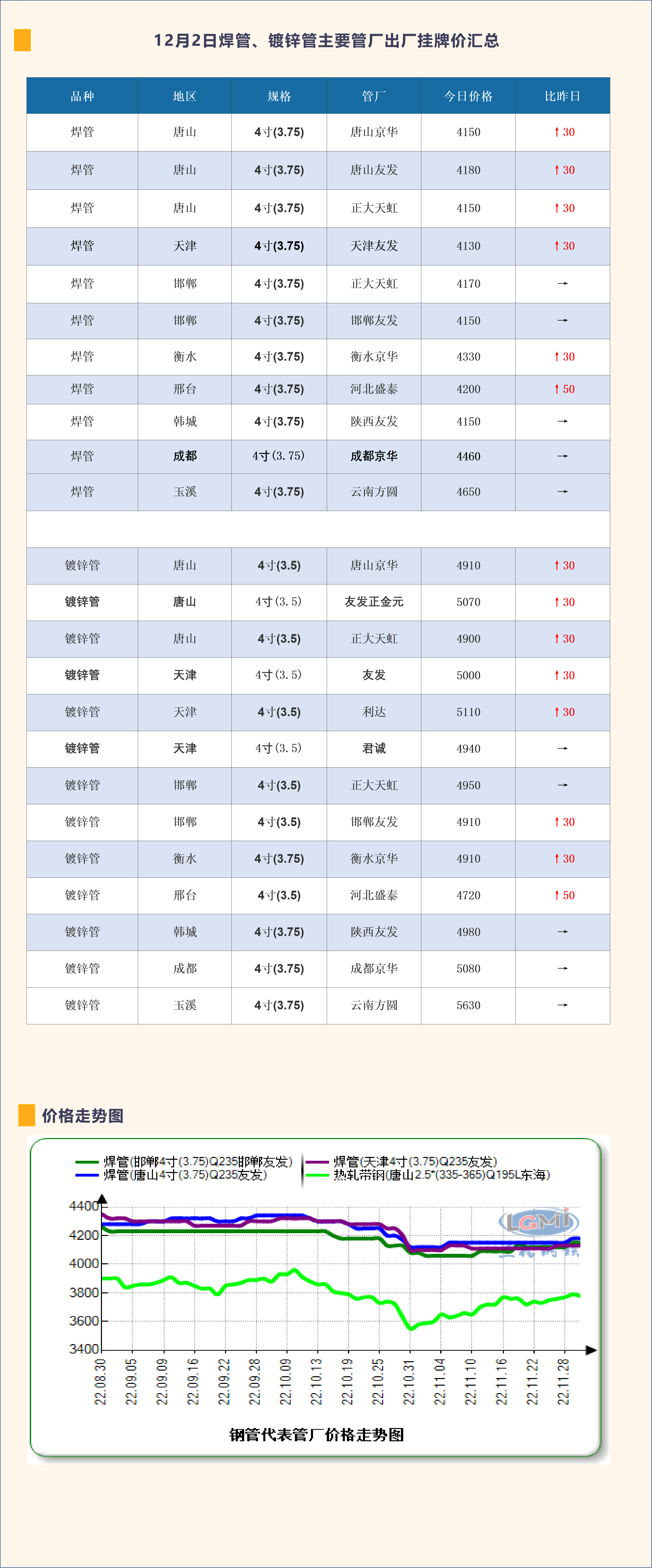 12月2日天津友发钢管集团股份有限公司第一分公司出厂价上调30