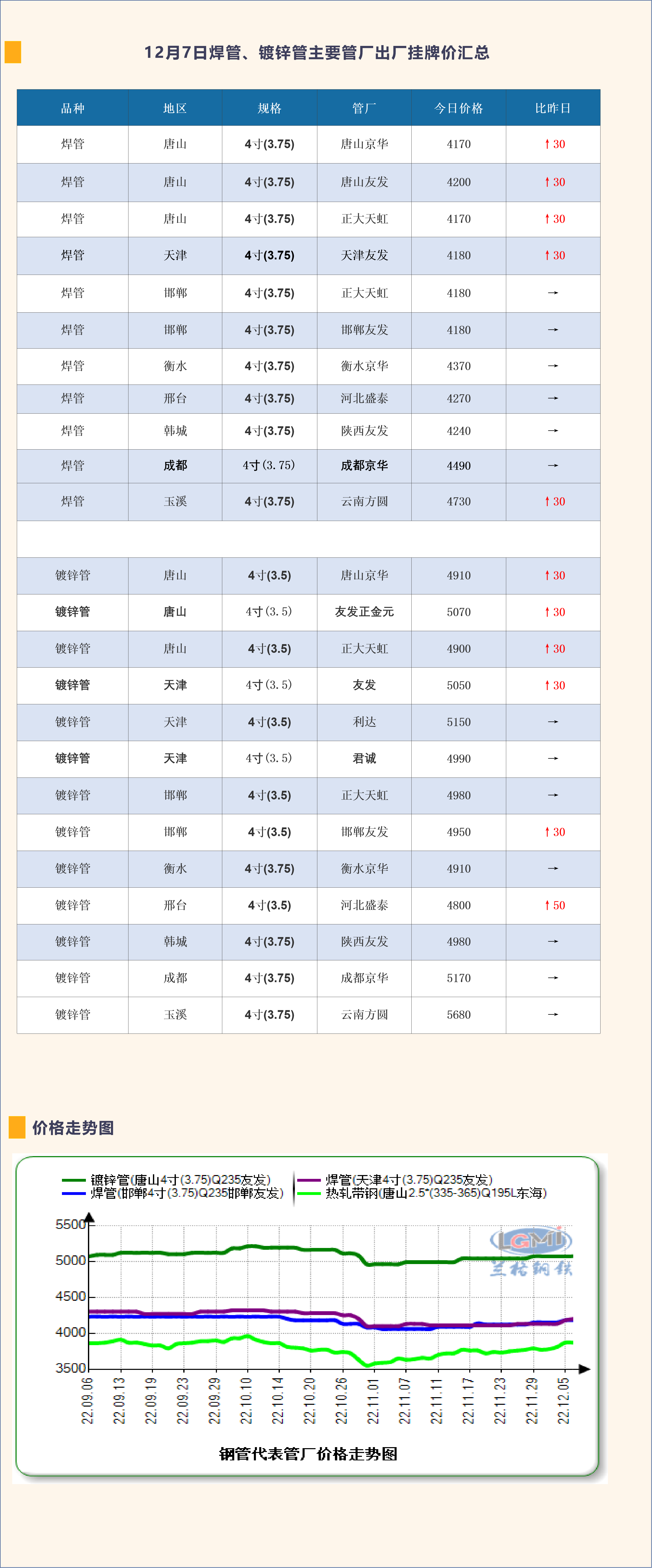 12月7日天津友发钢管集团股份有限公司第一分公司出厂价上调30