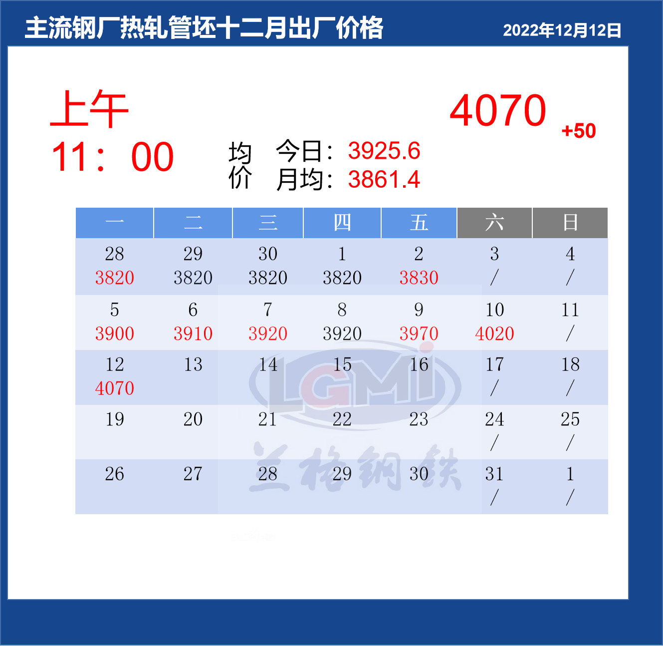 12月12日(11:00)国内管坯出厂价汇总