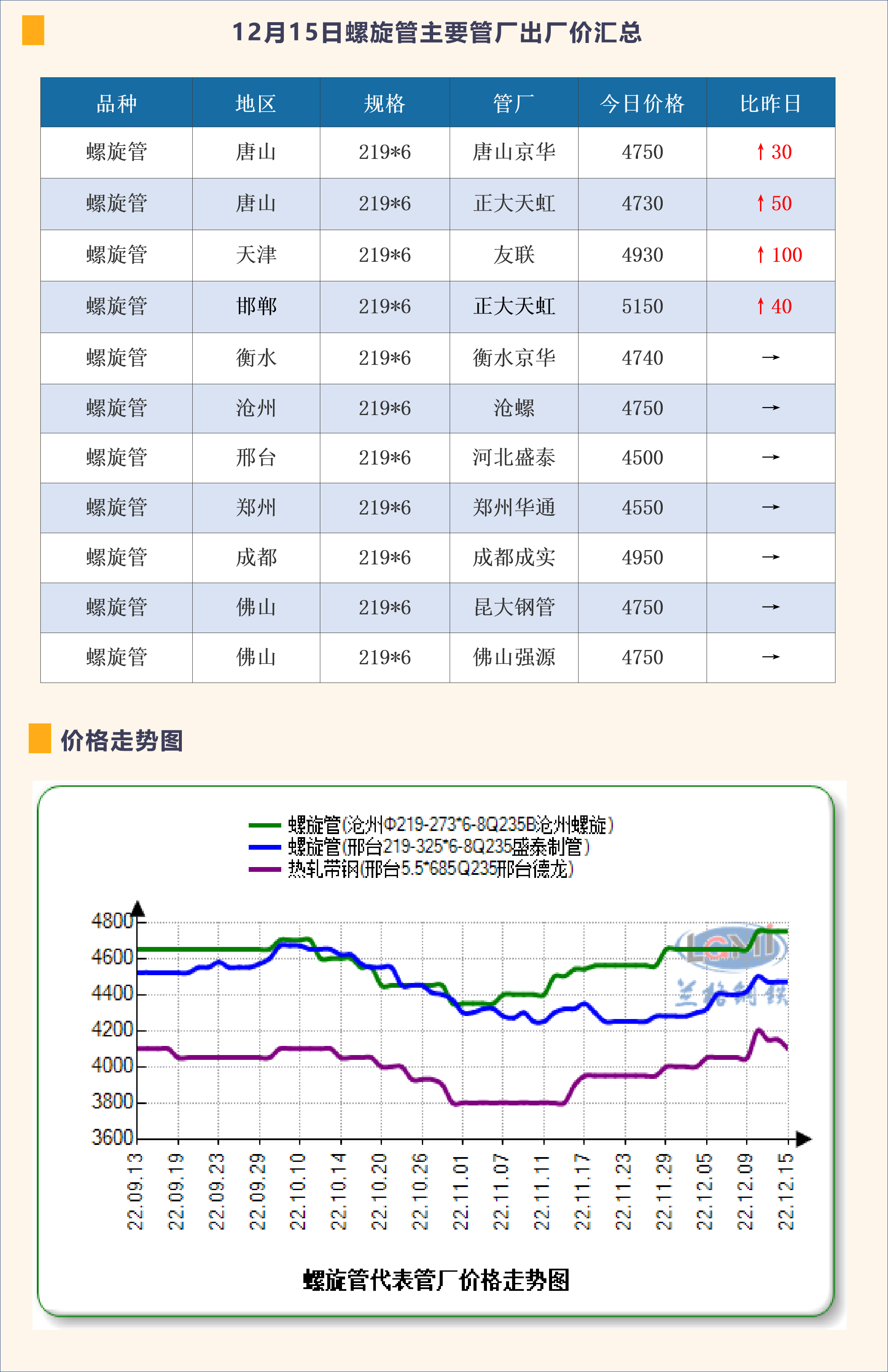 12月15日螺旋管主要管厂出厂价汇总