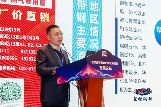 喜迎八方来客,共襄行业盛会,1月7日下午,由兰格钢铁网、山东磐金钢管制造有限公司主办,天津友发钢管集团股份有限公司联合主办的“金匠杯”2023年钢管产业链发展高峰论坛,在北京国测国际会议会展中心隆重举行。凌钢集团销售公司带钢部部长牛长辉在会上就主题为“带钢的供给形式所带来的机遇与挑战”做了精彩发言。