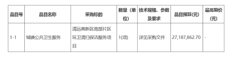 项目名称:清远高新区南部片区环卫清扫保洁服务项目