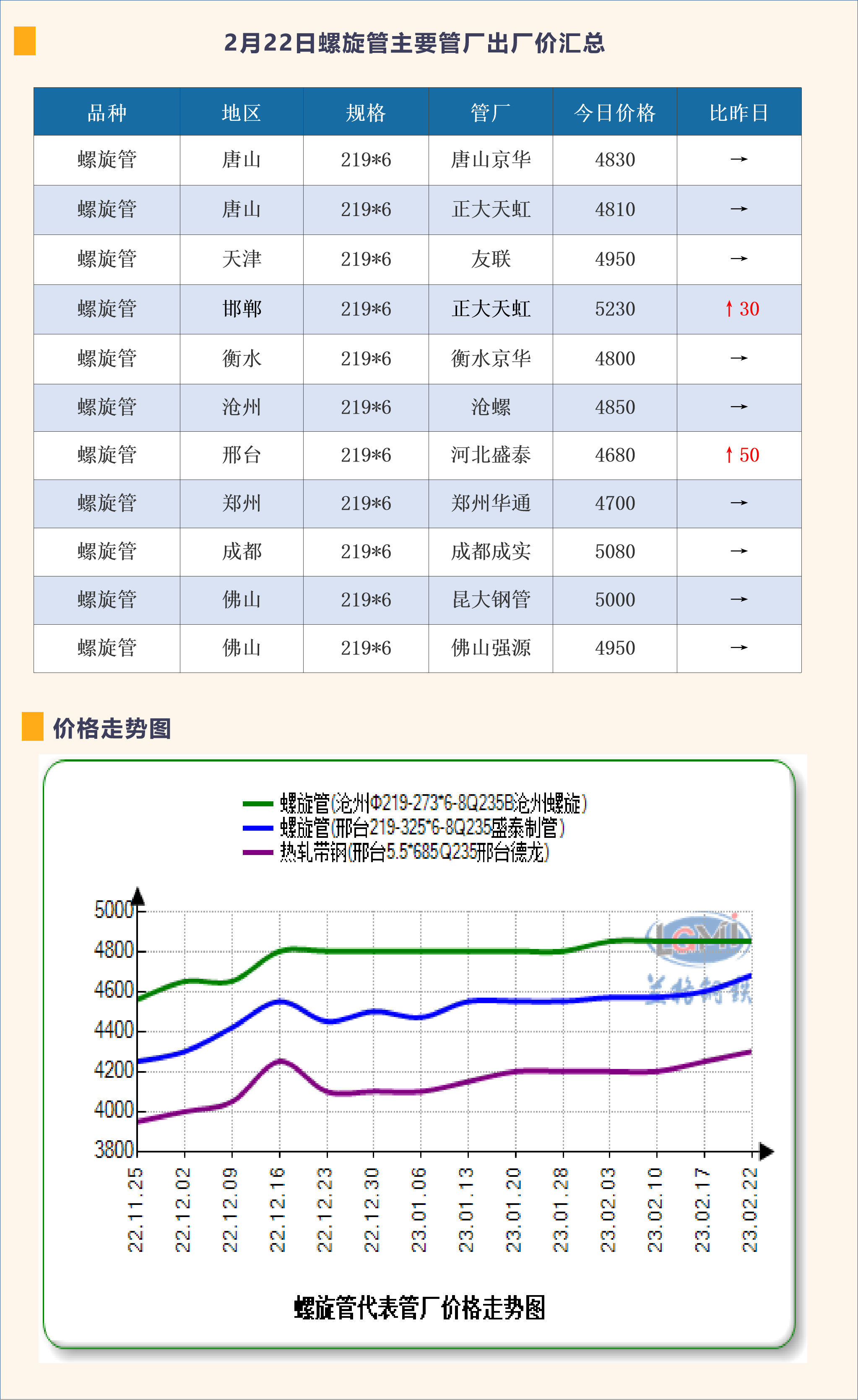 2月22日螺旋管主要管厂出厂价汇总