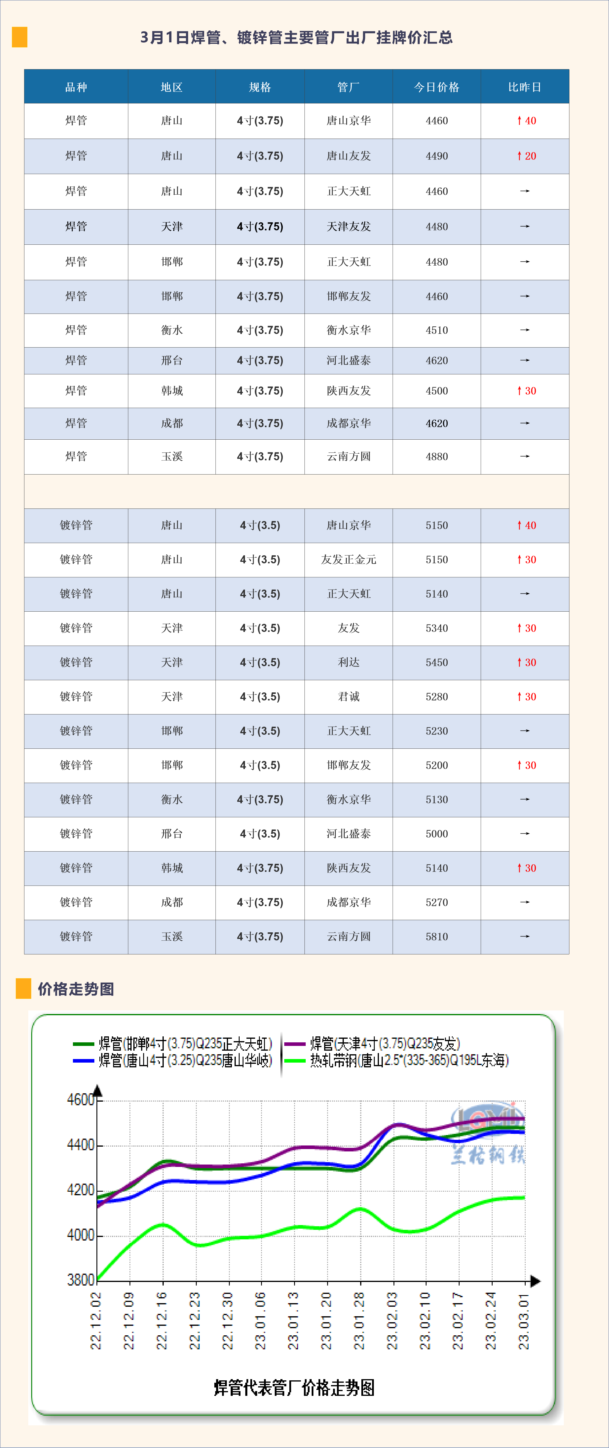 3月1日天津友发钢管集团股份有限公司第一分公司出厂价上调30