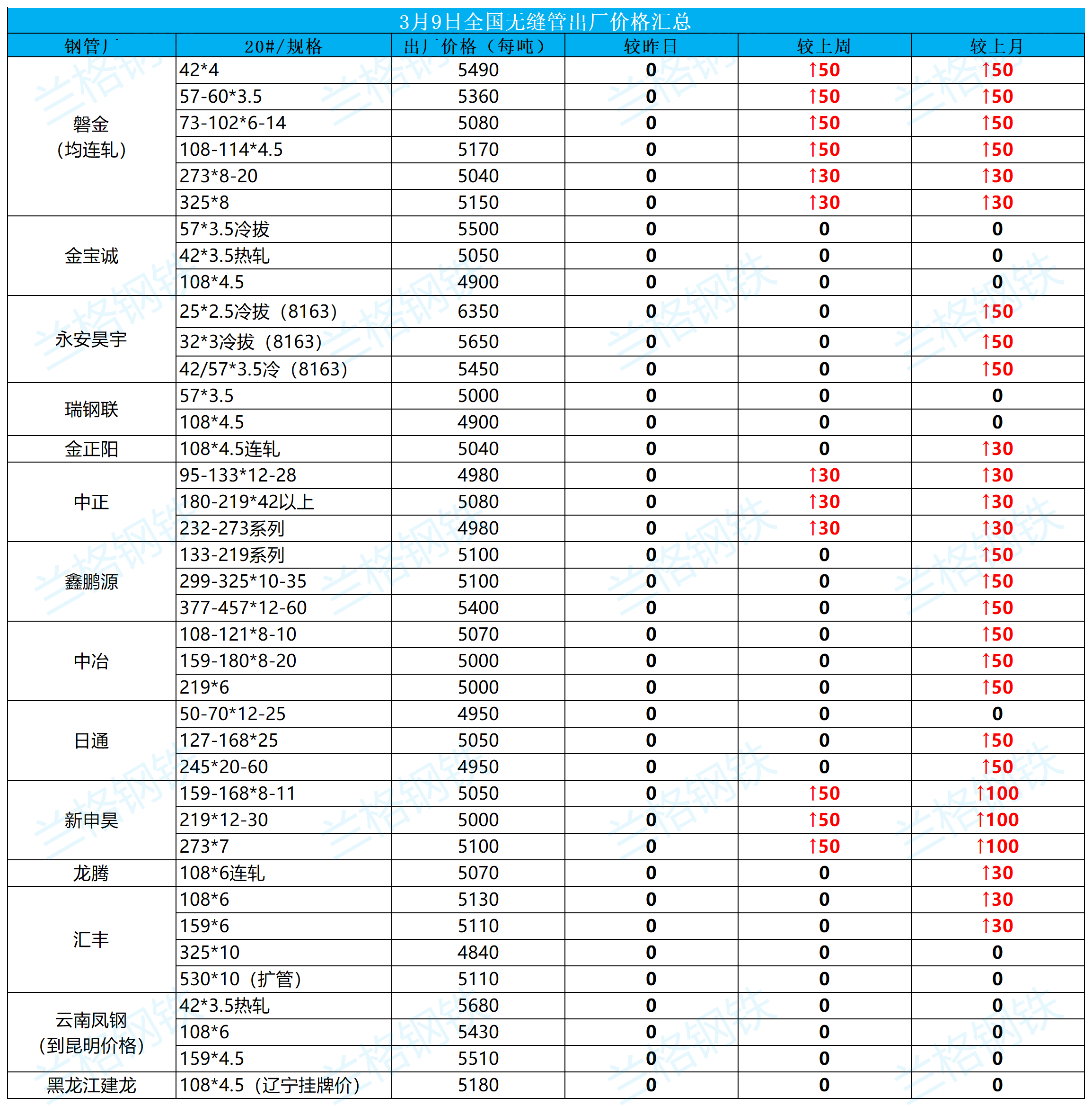 3月9日全国无缝管出厂价格汇总