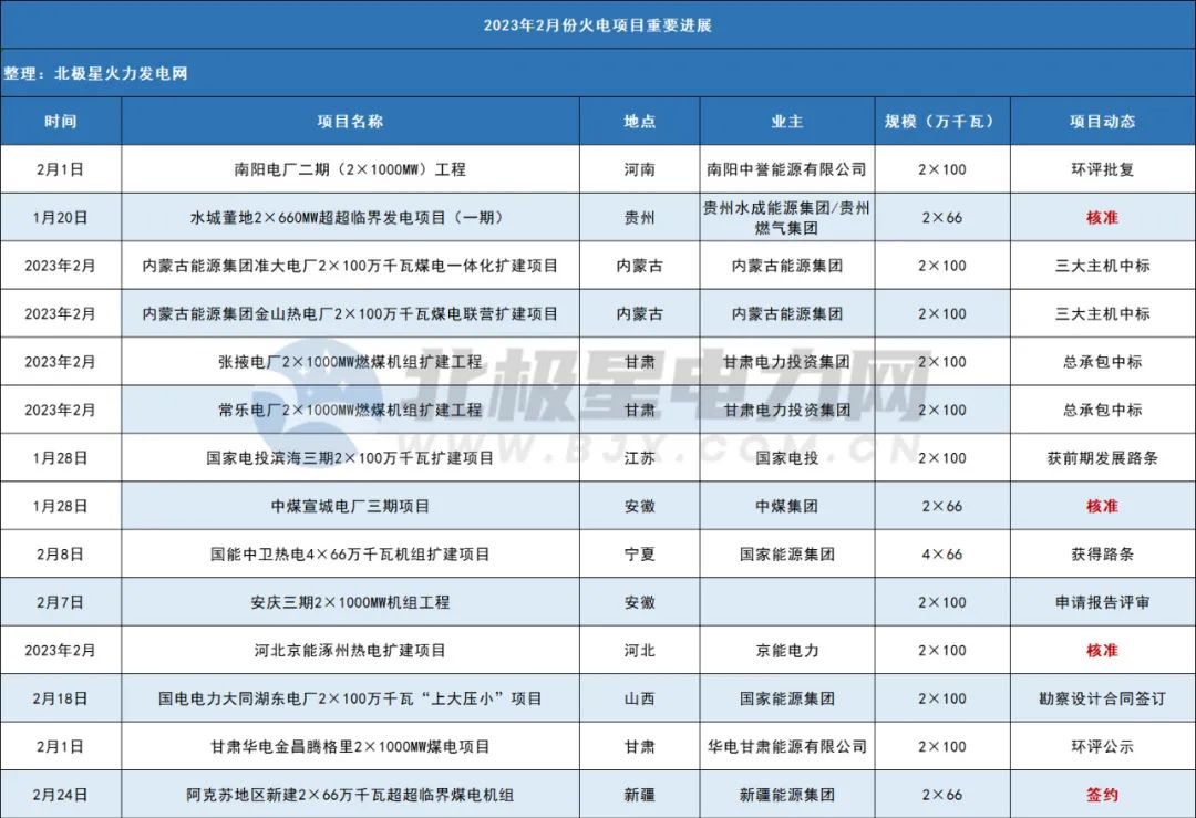中煤/京能等4个煤电大项目核准、签约——2023年2月份项目动态汇总