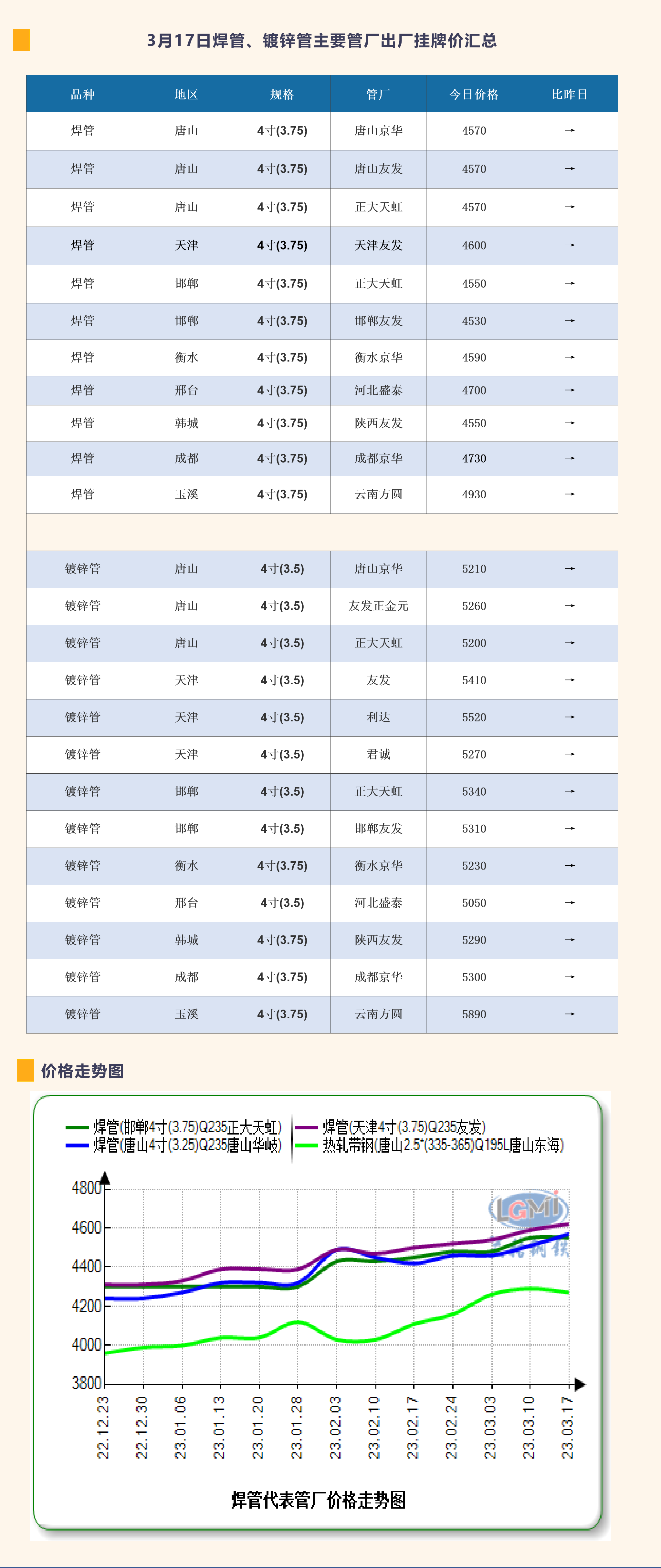 3月17日焊管、镀锌管主要管厂出厂挂牌价汇总
