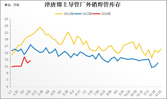 外销焊管 本周(3.17)厂内焊管库存12.65万吨,比上周同期降0.24万吨,下降1.86%;比上月同期增0.62万吨,增长5.15%;比去年农历同期降3.86万吨,下降23.38%。