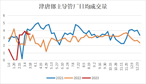 日均成交量 本周(3.17)各厂日均成交量3.52万吨,比上周同期增0.01万吨,增长0.28%;比上月同期增0.13万吨,增长3.83%;比去年农历同期增1.33万吨,增长60.73%。
