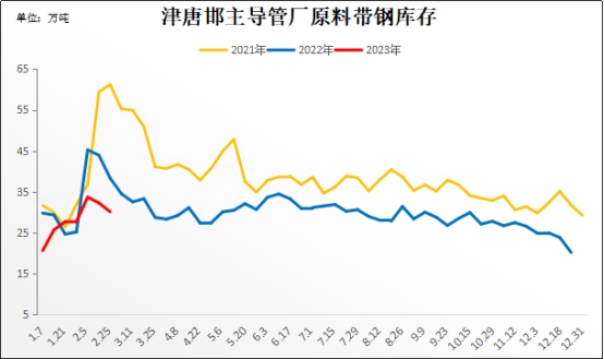 原料带钢 本周(3.17)厂内原料带钢库存31.57万吨,比上周同期增0.47万吨,增长1.51%;比上月同期降0.63万吨,下降1.96%;比去年农历同期增3.34万吨,增长11.83%。