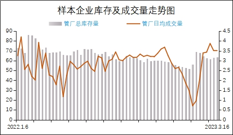 本周主导管厂库存数据变化 本周(3.17)厂内总库存63.57万吨,比上周同期增0.25万吨,比上月同期降1.05万吨,比去年农历同期降4.99万吨,比2021年农历同期降26.2万吨。