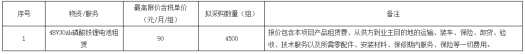公告显示,本次采购为48V30Ah磷酸铁锂电池租赁,最高限价含税单价90元/月/组,拟采购4500组,含税总价486万元,质量要求符合电动车新国标规定;续航里程夏季续航里程≥70公里,冬季续航里程≥55公里;中标单位提供7*24小时单体电池状态监控监测服务、故障电池以旧换新服务、电池丢失/盗抢以公安机关报案记录免赔服务、订单数5%免费备品备货服务。