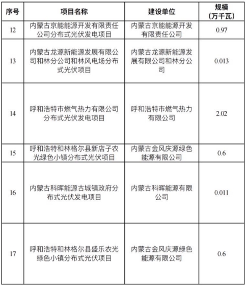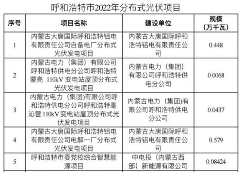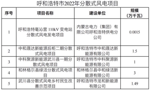 呼和浩特市2022年分散式风电、分布式光伏三年行动计划项目优选结果的公示