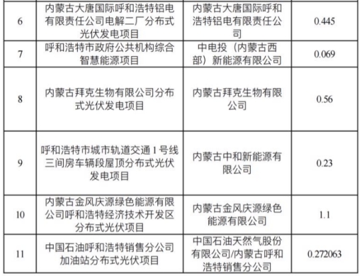 22个分布式能源项目的建设单位涵盖,大唐、国家电投、国家能源集团、呼和浩特城市交通、金风科技、内蒙古电力集团、浙商产融、京能、中国石油等数十个企业。