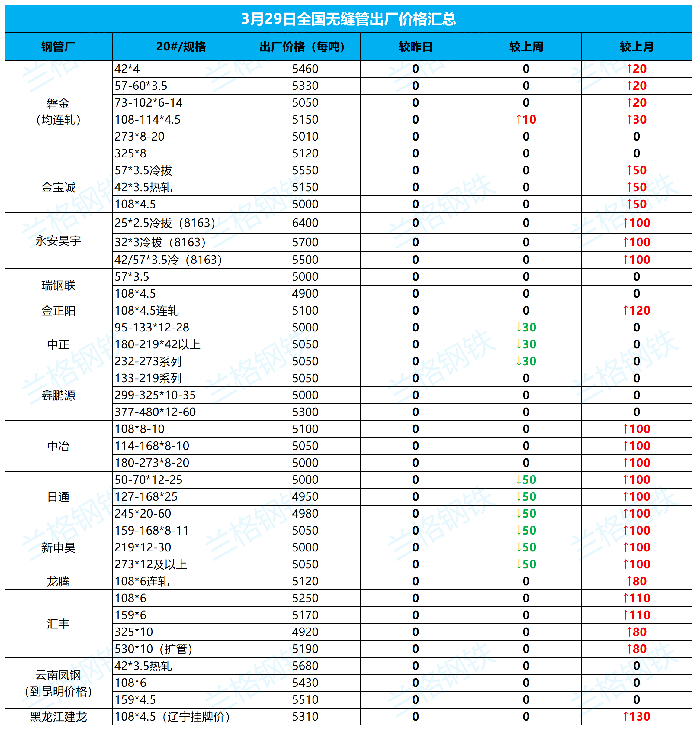 3月29日全国无缝管出厂价格汇总
