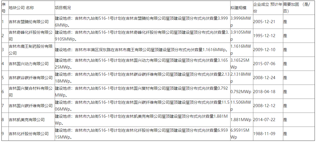 3月28日,吉林化纤集团有限责任公司太阳能光伏发电特许经营项目总承包工程招标,本次招标一个标段,包含9个地块光伏项目,一家单位(联合体)中标;具体装机容量以实际为准。