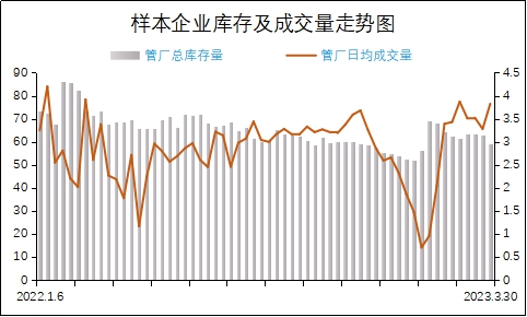 本周主导管厂库存数据变化 本周(3.30)厂内总库存59.25万吨,比上周同期降3.84万吨,比上月同期降2.29万吨,比去年同期降9.31万吨,比2021年同期降29.95万吨。