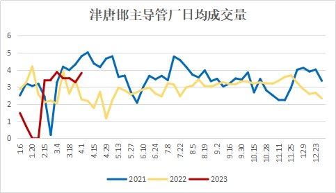 日均成交量 本周(3.30)各厂日均成交量3.82万吨,比上周同期增0.54万吨,增长16.46%;比上月同期减0.04万吨,下降1.03%;比去年同期增1.63万吨,增长74.42%。