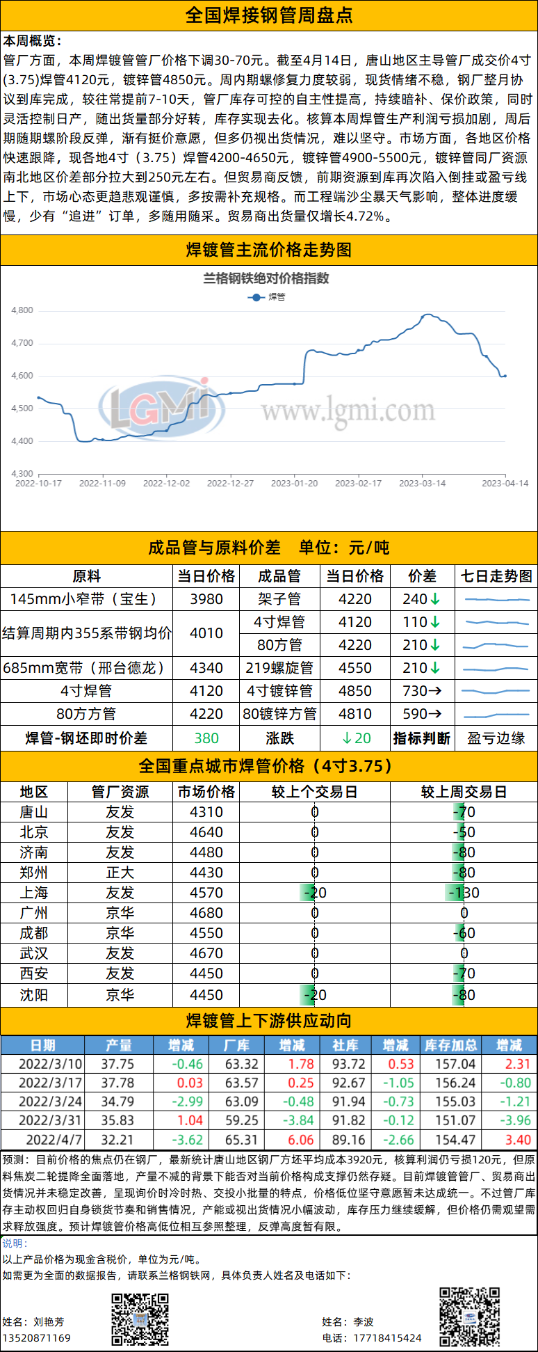 - 兰格钢铁价格指数(LGMI)第15周(23.4.10-4.14)2023/4/14