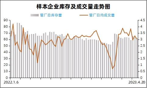 本周主导管厂库存数据变化 本周(4.21)厂内总库存61.85万吨,比上周同期降1.18万吨,比上月同期降1.24万吨,比去年同期降4.14万吨,比2021年同期降21.71万吨。