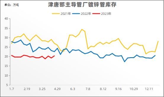 外销镀锌管 本周(4.21)厂内镀锌管库存20.33万吨,比上周同期增1.1万吨,增长5.72%;比上月同期增0.27万吨,增长1.35%;比去年同期降2.24万吨,下降9.92%。