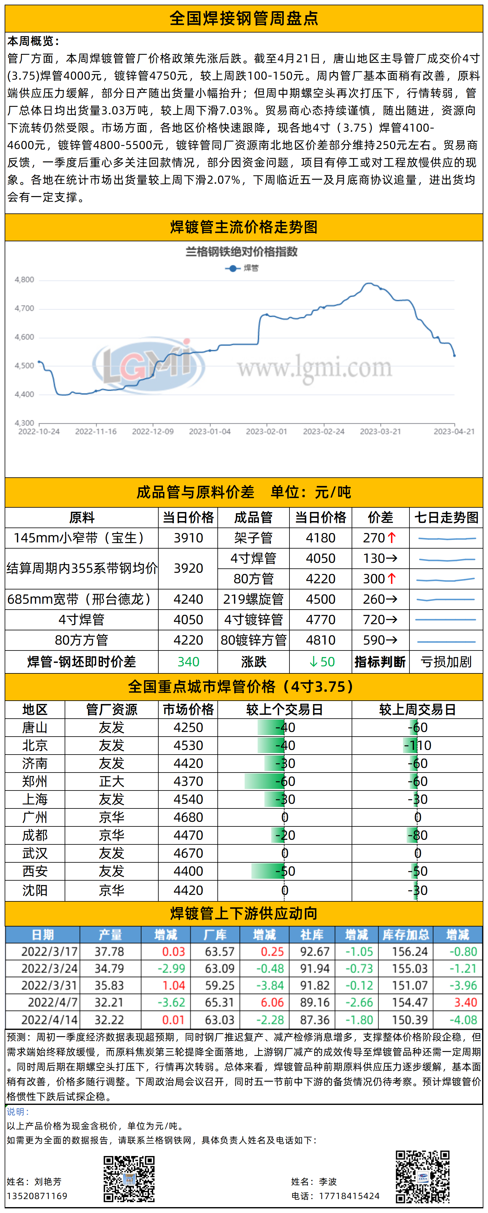 焊镀管价格再次转弱 观望五一节前能否企稳