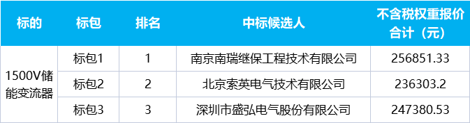 北极星储能网获悉,4月26日,南网科技储能系统配套设备框架采购中标候选人公示。此次开标的是1500V储能变流器标段。