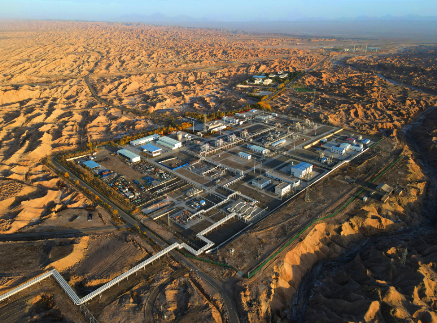 浩瀚的雅丹地貌群中矗立的中国石油塔里木油田现代化处理站