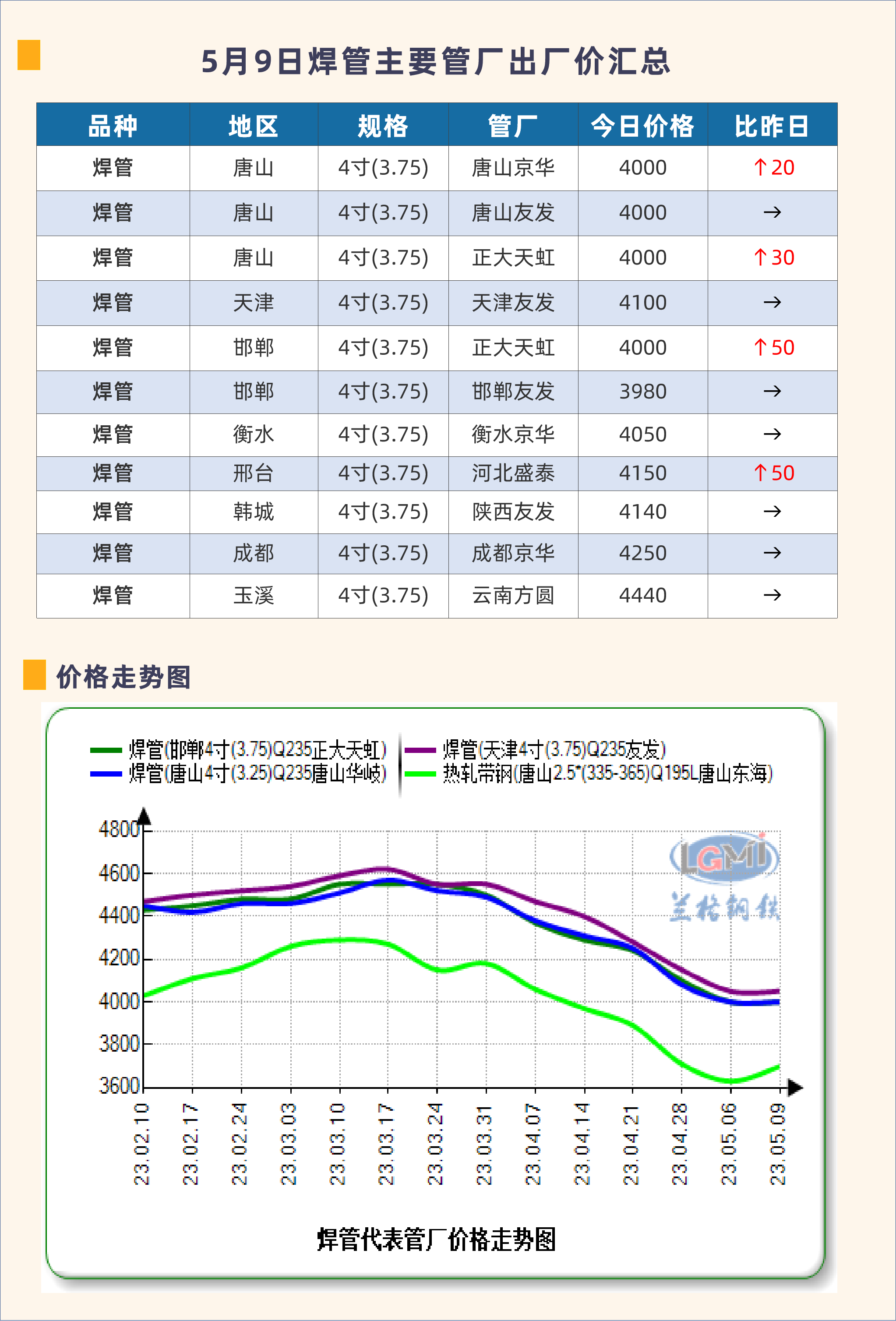 5月8日天津友发钢管集团股份有限公司第一分公司出厂价上调20