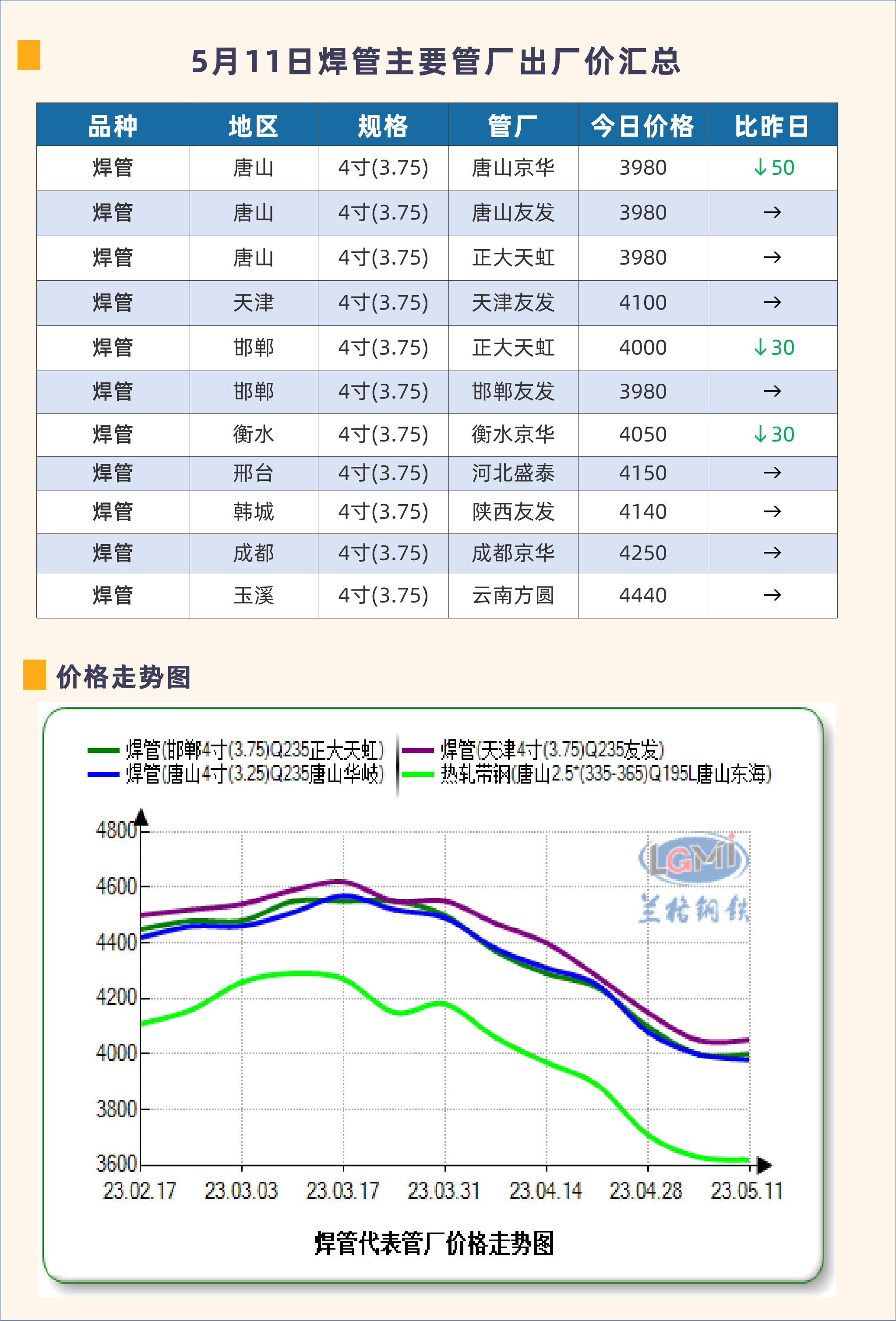 • 5月11日天津友发钢管集团股份有限公司第一分公司出厂价下调50
