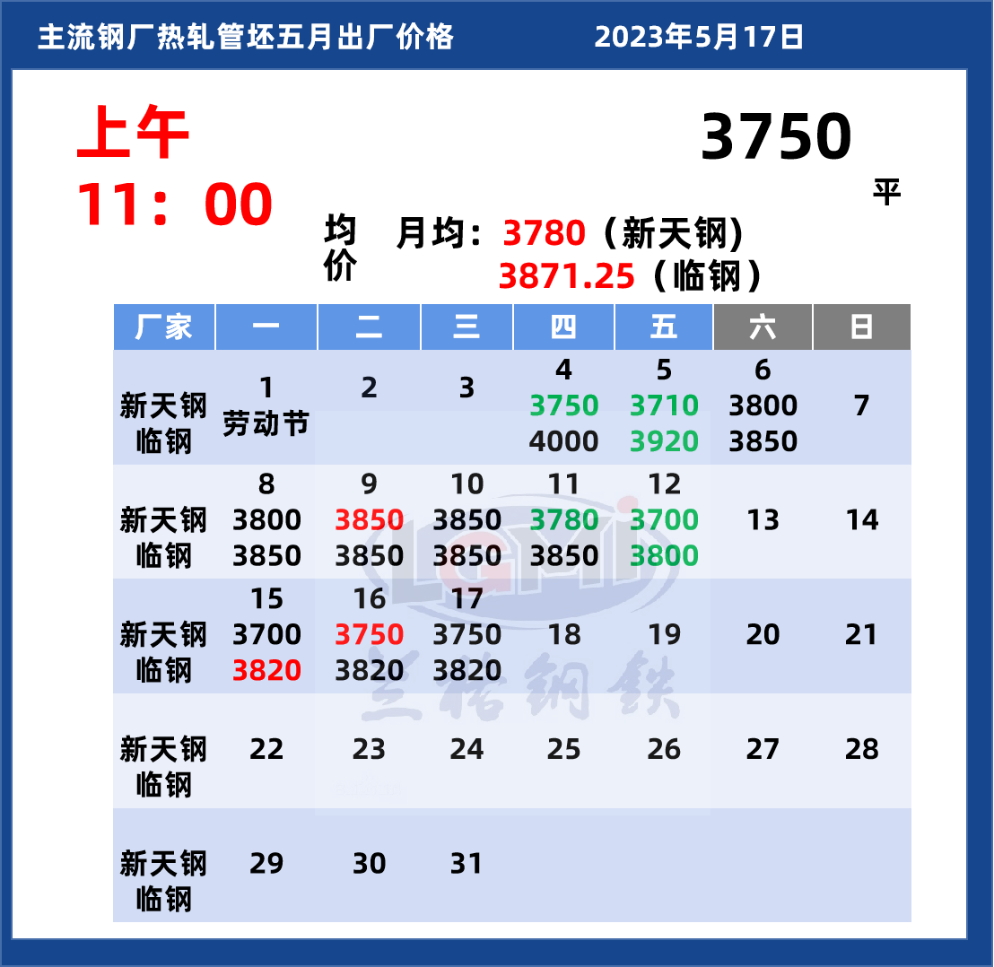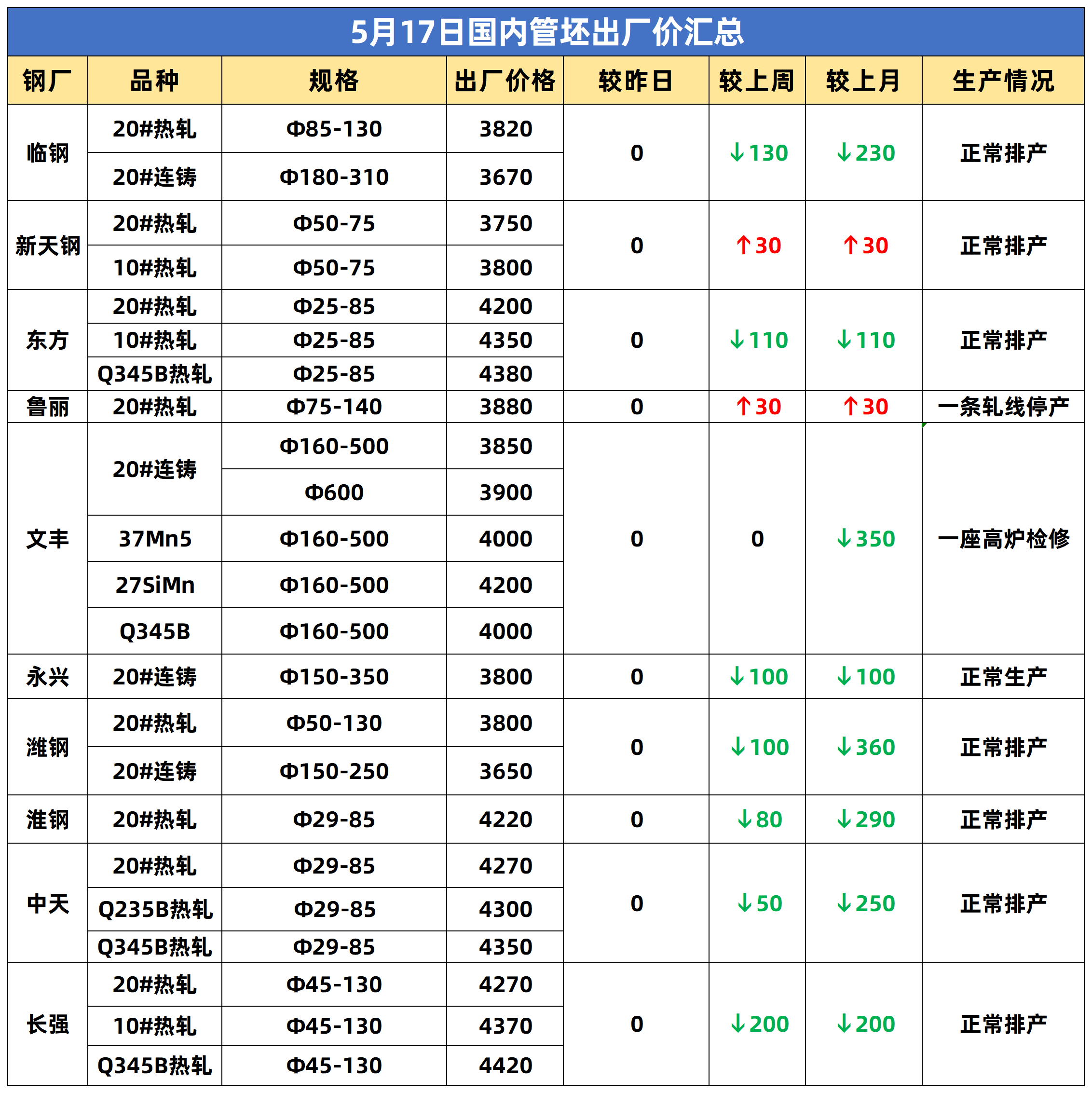 • 5月16日(11:00)兰格管坯出厂价汇总