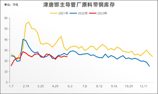 原料带钢 本周(5.26)厂内原料带钢库存28.8万吨,比上周同期降0.67万吨,下降2.27%;比上月同期增2.33万吨,增长8.8%;比去年同期降1.79万吨,下降5.85%。