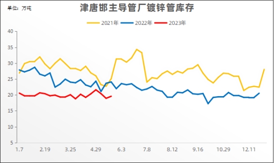 外销镀锌管 本周(6.2)厂内镀锌管库存20.08万吨,比上周同期增0.15万吨,增长0.75%;比上月同期降0.33万吨,下降1.62%;比去年同期降3.49万吨,下降14.81%。