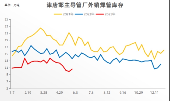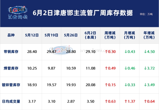 外销焊管 本周(6.2)厂内焊管库存11.08万吨,比上周同期增0.49万吨,增长4.63%;比上月同期降0.46万吨,下降3.99%;比去年同期降3.72万吨,下降25.14%。
