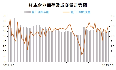 本周主导管厂库存数据变化 本周(6.2)厂内总库存60.26万吨,比上周同期增0.94万吨,比上月同期降1.22万吨,比去年同期降11.71万吨,比2021年同期降26.25万吨。