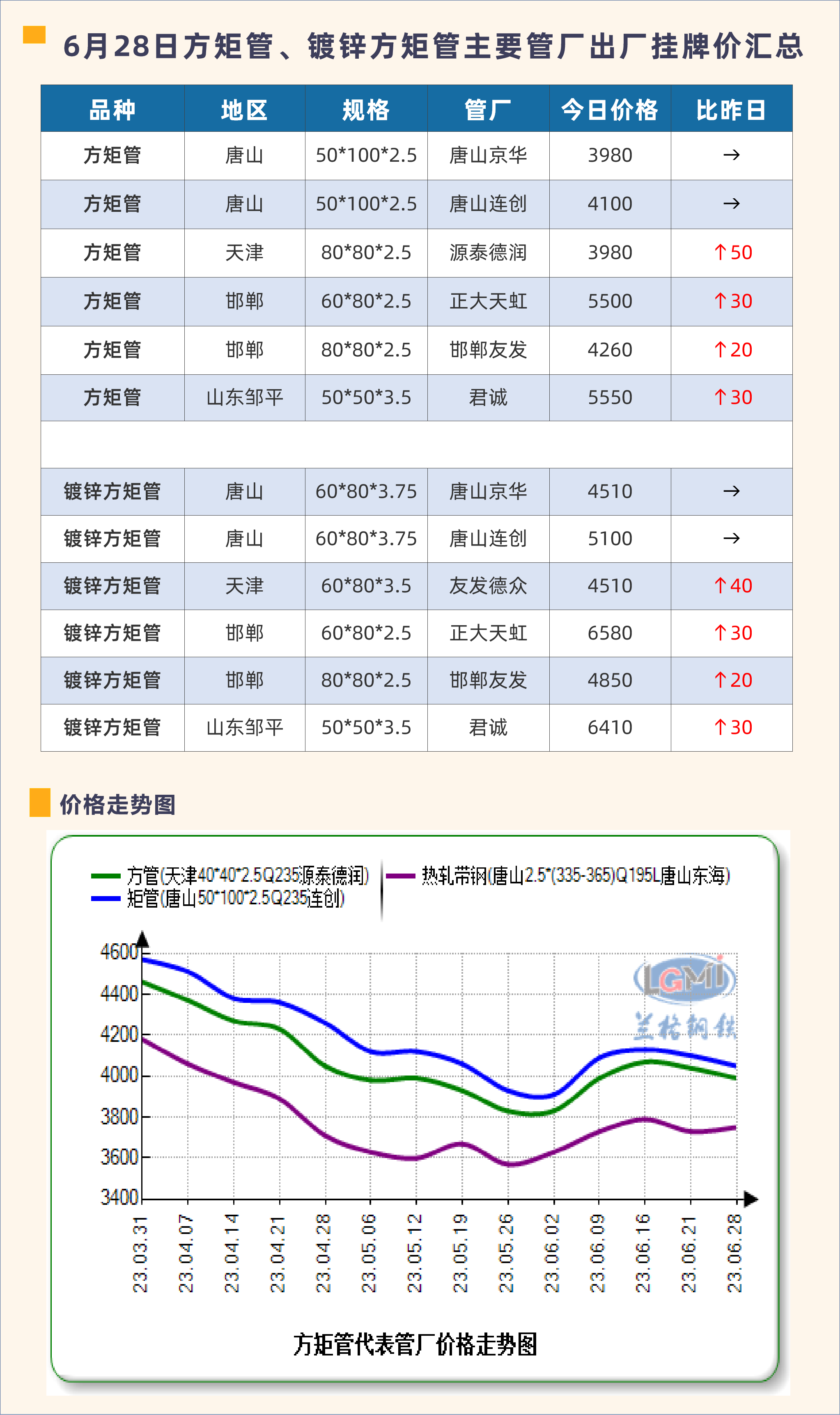 • 6月28日方矩管、镀锌方矩管主要管厂出厂挂牌价汇总