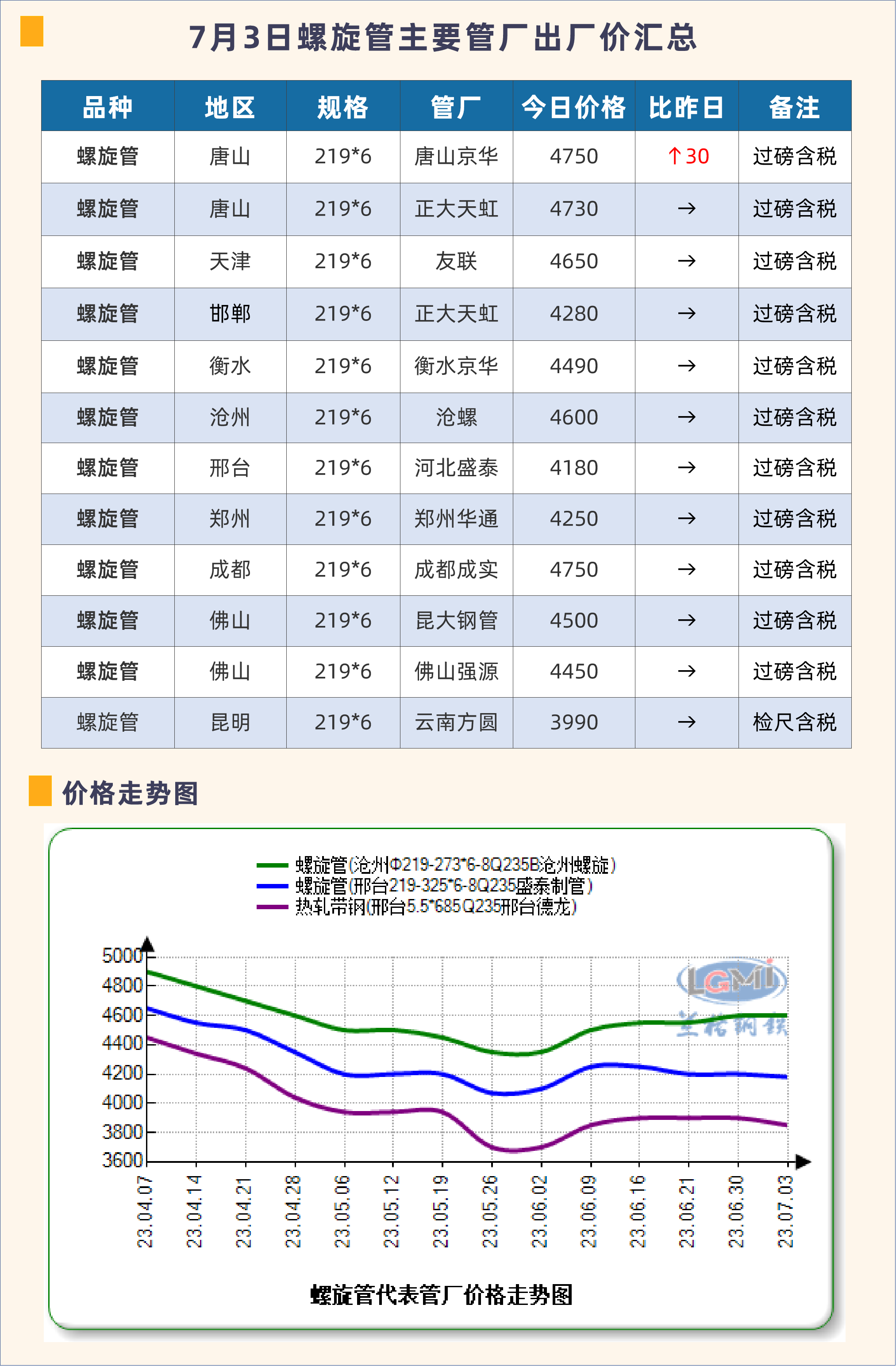 7月3日螺旋管主要管厂出厂价汇总