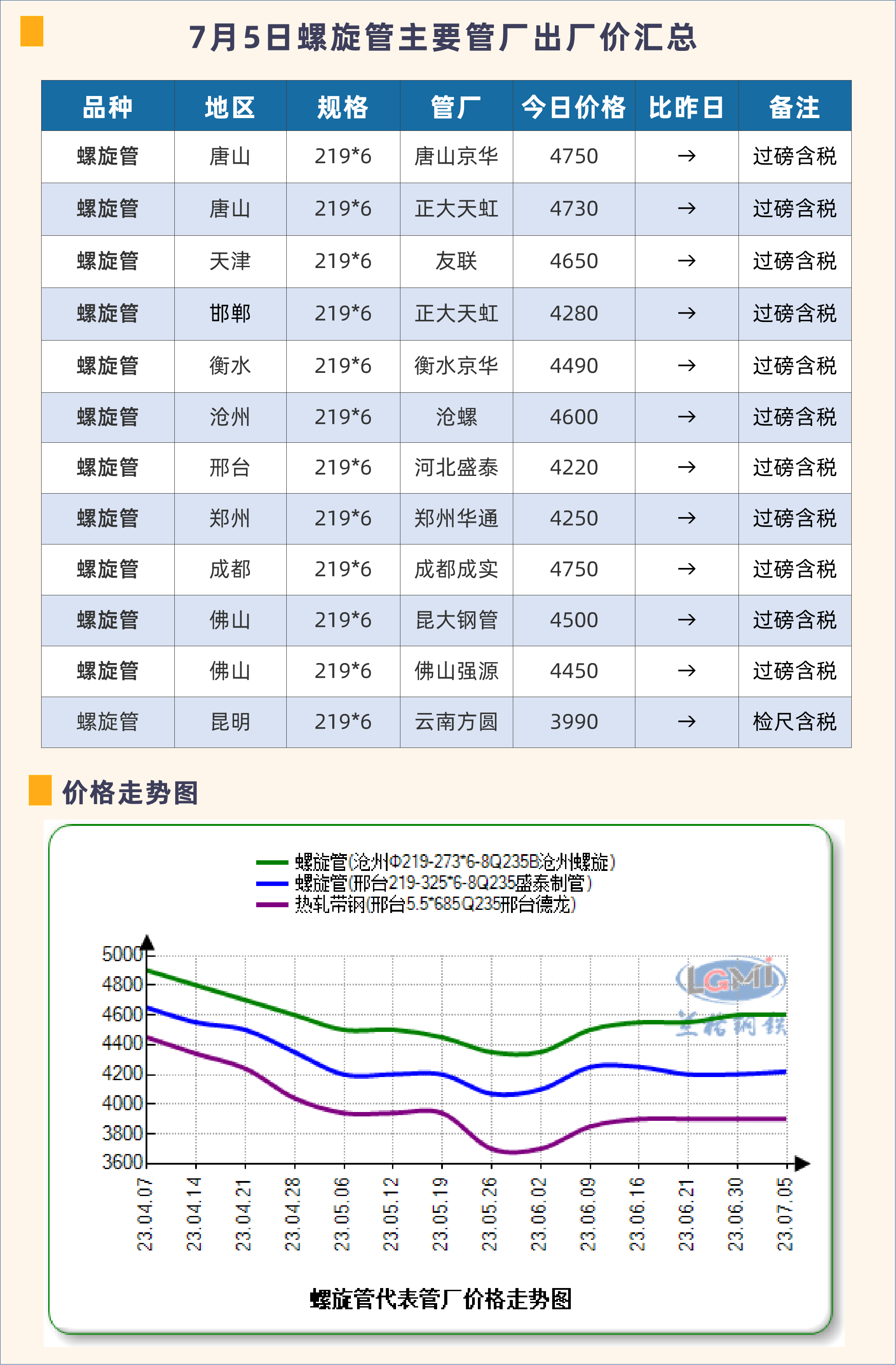 7月5日螺旋管主要管厂出厂价汇总