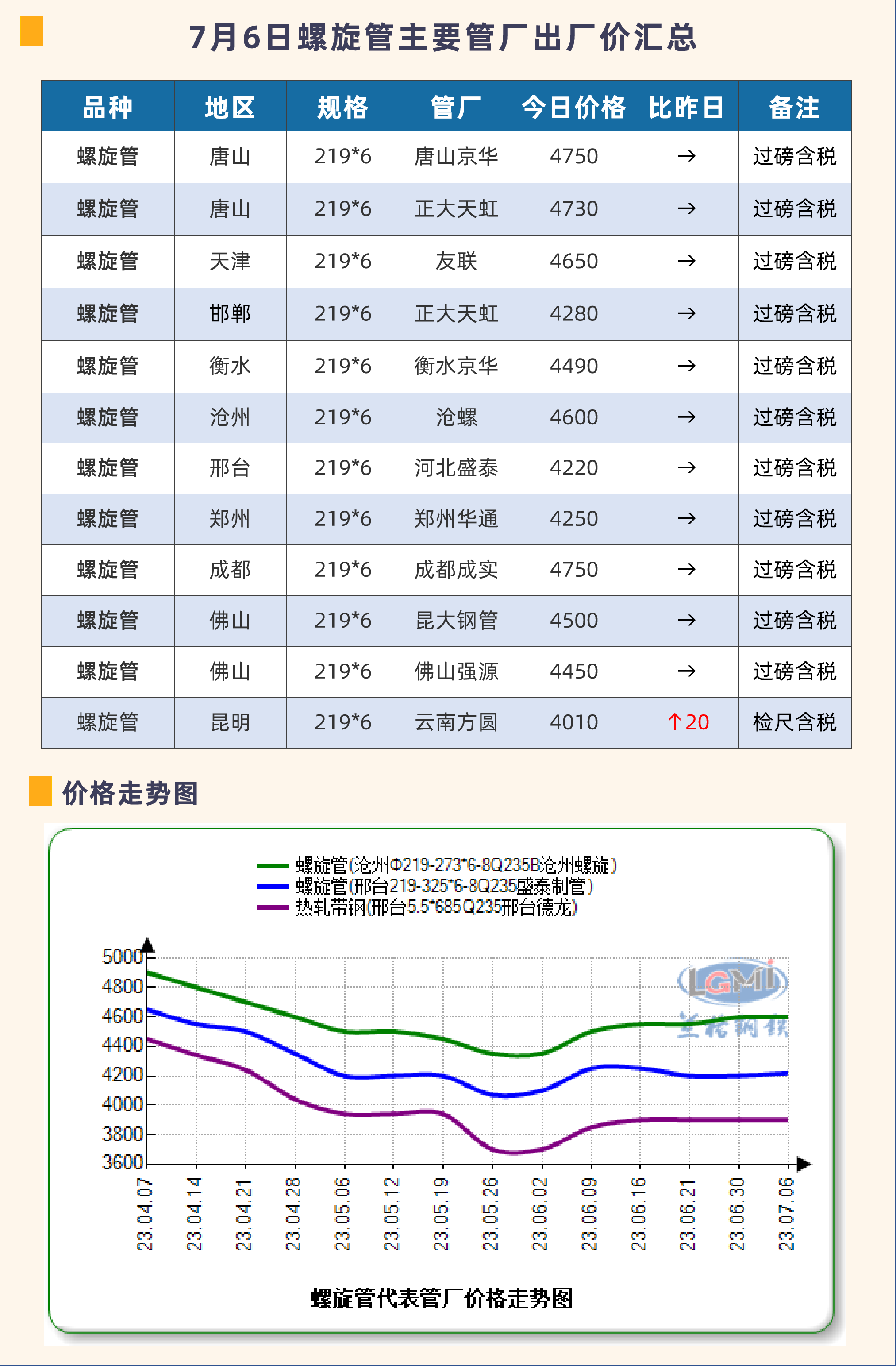 7月6日螺旋管主要管厂出厂价汇总