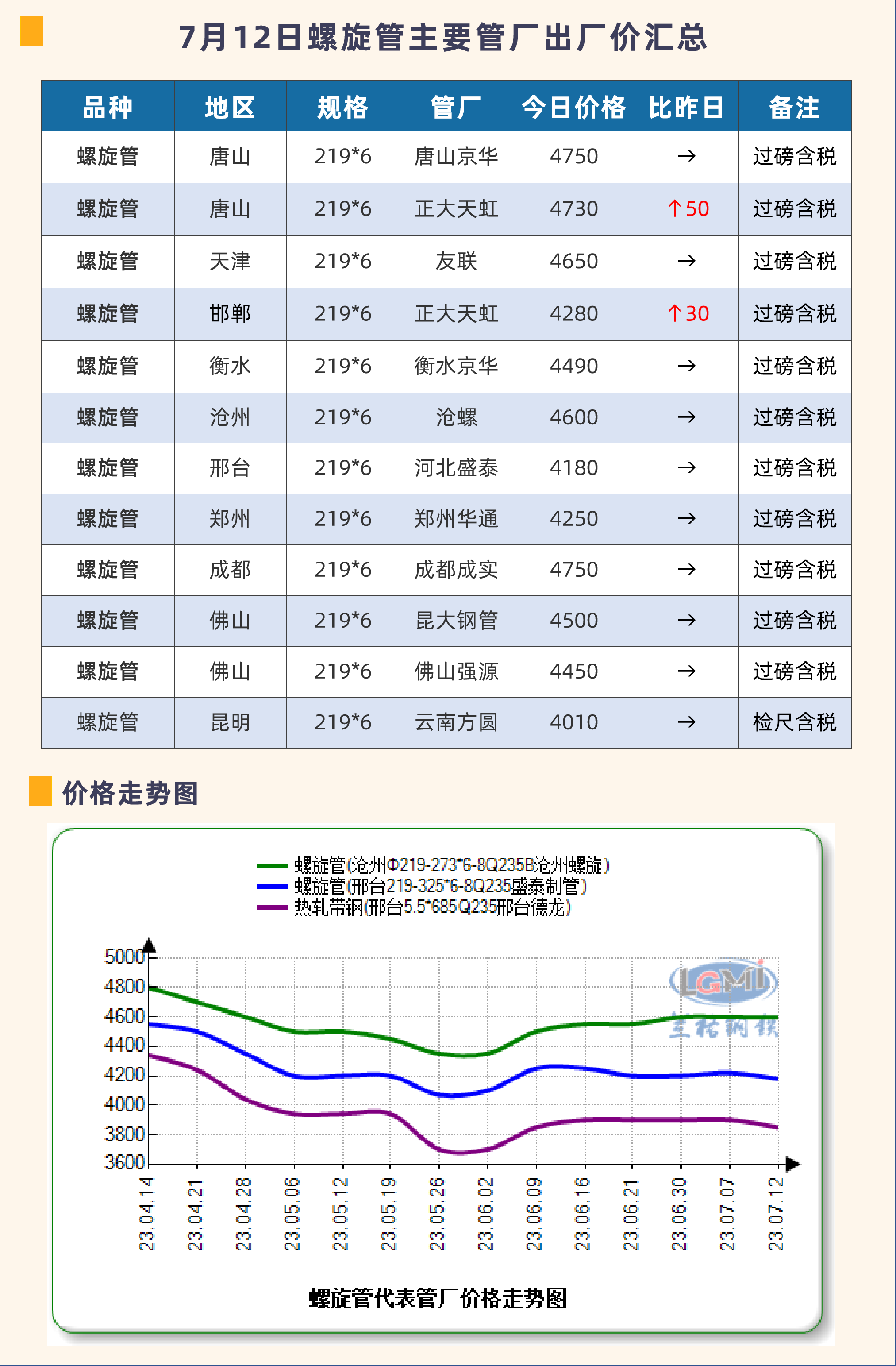 • 7月12日螺旋管主要管厂出厂价汇总