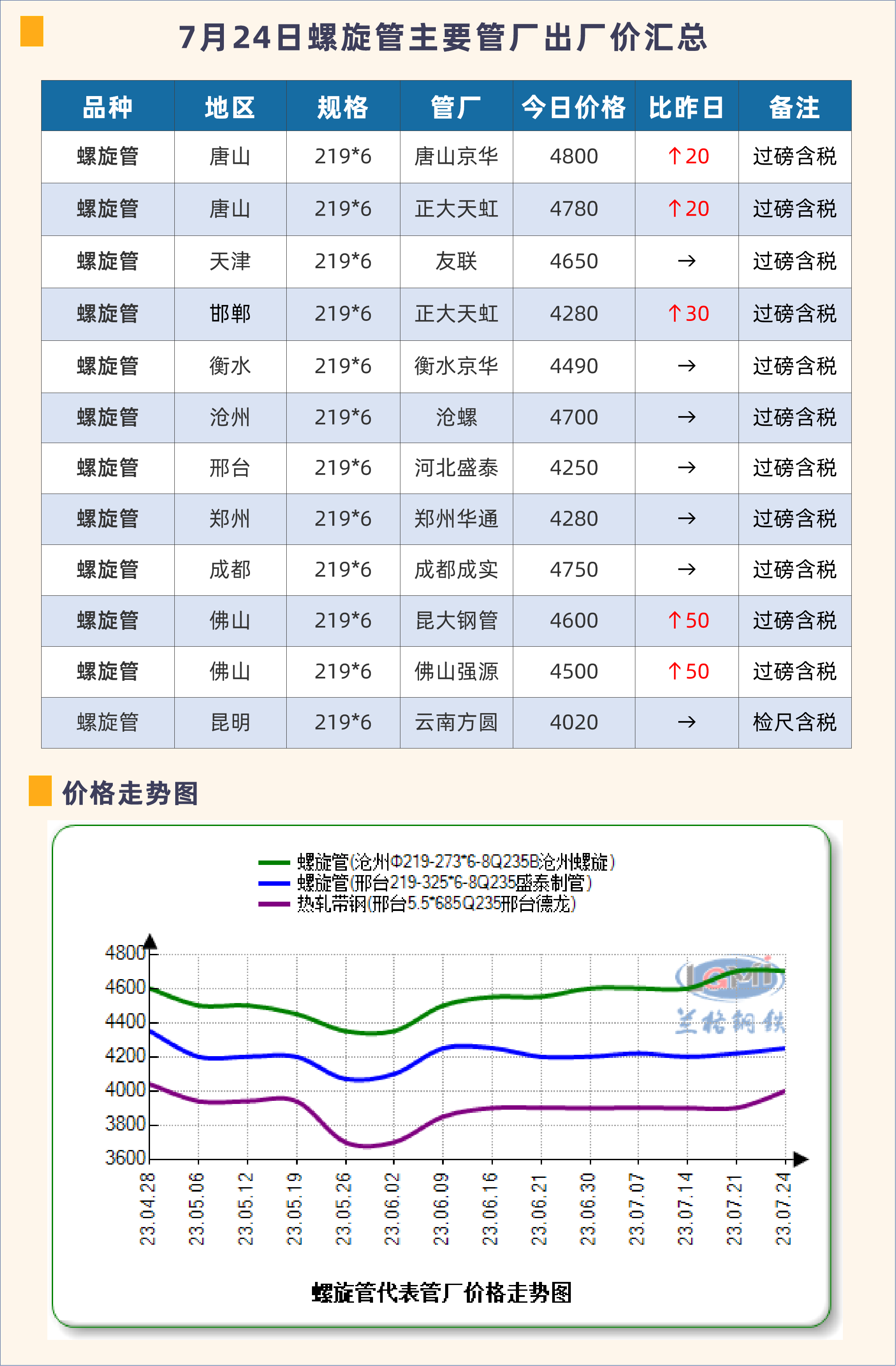 • 7月24日螺旋管主要管厂出厂价汇总