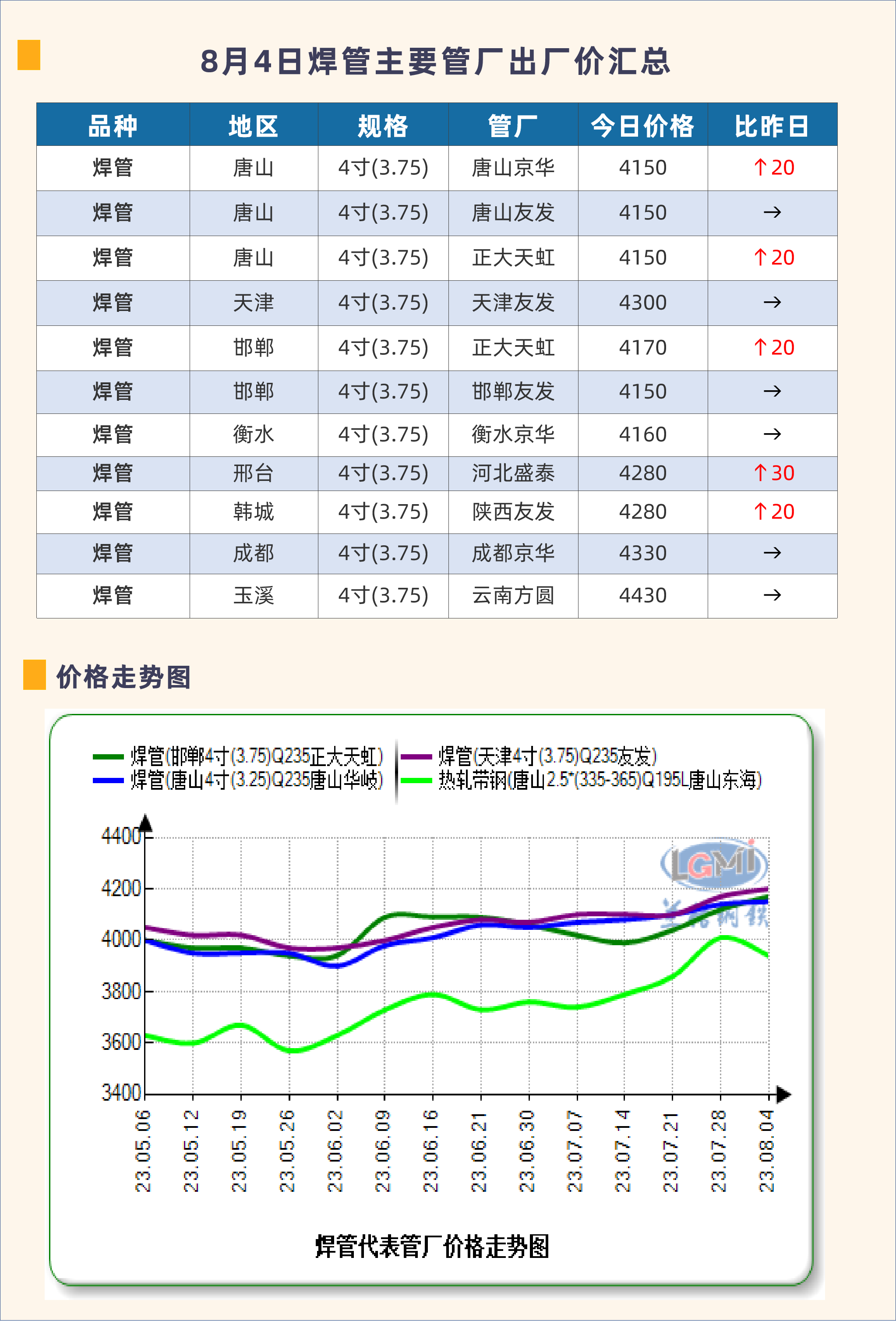 • 8月3日方矩管、镀锌方矩管主要管厂出厂挂牌价汇总