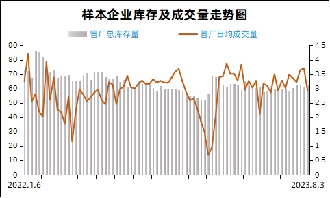 日均成交量 本周(8.4)管厂日均成交量2.93万吨,比上周同期减0.78万吨,下降21.02%;比上月同期减0.43万吨,下降12.8%;比去年同期减0.5万吨,下降14.53%。